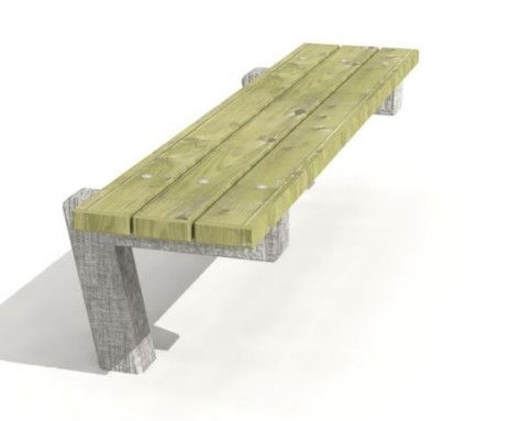 Banco Urbano de Madera Impregnada sin respaldo. patas extendidas, altura del asiento 45 cm.