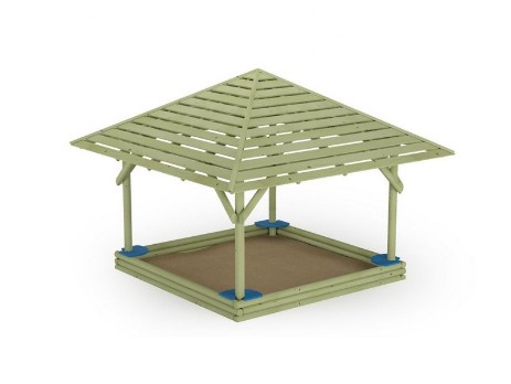 Pergola Cuadrada de Vigas , con Asientos HDPE y Techo Solar.